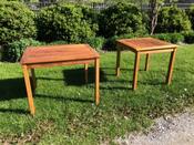 Two outdoor tables for our patio. One comfortably seats 4 and second is slight smaller as we can then easily move to our deck area as well or put them together to seat 6...