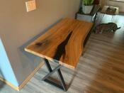 First I want to start off and say that I hate epoxy tables. A friend of mine tried to do a live edge table and screwed it to some 4x4’s threw some lacquer on three sides. It was still green and then nature set in and warped it (see bottom pictures). He was going to throw the slab away but I told him I would fix it. I had never done a resin pour before because I do not like epoxy tables. The table was originally 6 feet so is cut it down to 48 inches then flattened it with a router sled. I built a mold and poured epoxy. Of course the mold release didn't work or I used it wrong. I probably used it wrong. I had to mill the mold off of the table because they had become one. I probably will not do another epoxy table again but after trying one I definitely gained some respect for the guys that do it all the time. It’s a ton of work.