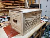 Made the four sides the same as I would make doors with rails and styles, then connected them with pocket hole screws and covered the screws with a 1/8" veneer of Amb Maple. Made a dado in the sides to accept the bottom and some walnut rails to accent the top. The little girl loved the box.