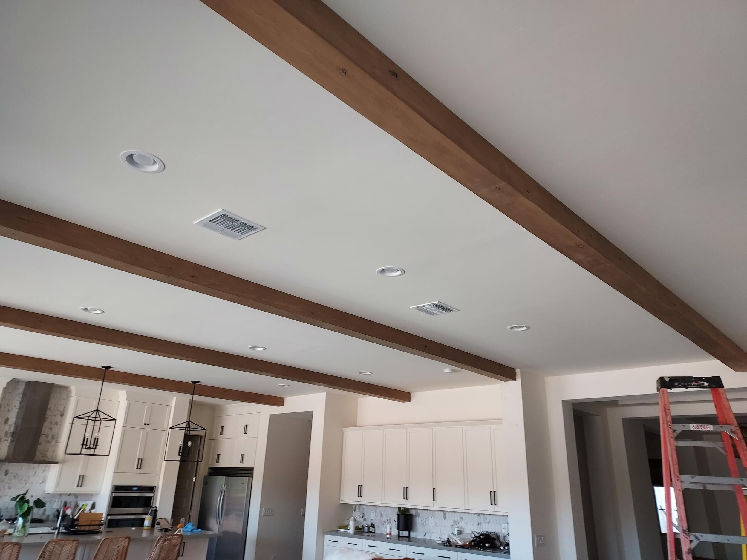 8"×8"×27' box beams constructed using 45° lock mitre joint.
