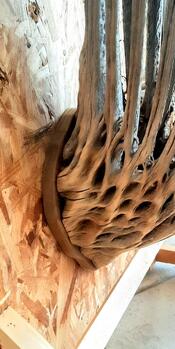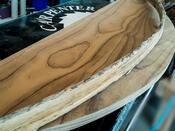 After spending over an hour at the Elliot Rd store I decided on a nice piece of shedua. It turned out to be a great match for the saguaro arm. If anyone knows of another, I would love to hear about it, I planed 1 side of a girthy rib then ran it through the planer. What was left was a plank of saguaro "lumber". Has anyone ever heard of seen anything like it? There will be a vertical from the top that will go against the wall and project LEDSMore updates to come. After another 90 hours of sanding 😎 I hope to build my name building functional works of art. My next project is a coffee table/ end table set. Any thoughts on other species that might look good with saguaro?