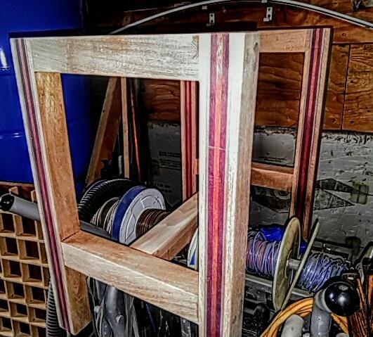 Live Edge Mesquite with "Aqua Blue" epoxy slow set poured in center, base has inlays made from Black Walnut, Hickory & Bloodwood