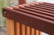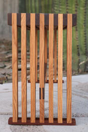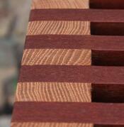Ipe is fine grained and, as you can see, with an oil finish it casts a warm reddish hue. White oak is downright sandy in color but also defined by a nice texture that works well with the ipe.