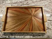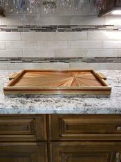 I got the idea for this from Mark Stephens’ YouTube video featuring a drawer front that used this same zebra wood pattern. A little complicated for my skill level but my wife loves it.