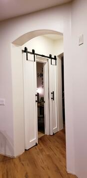 Built to help provide an unobscured entry to a bathroom. Before replacing the hinged door one had to shuffle around the door in order to get inside.
