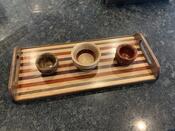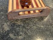This is basically a cutting board with handles. Add a few small matching wood bowls for dip and salsa and finish everything with about 4 thin coats of General Bowl Finish so that the items can be safely rinsed with water.