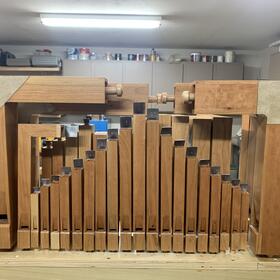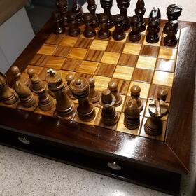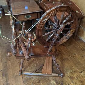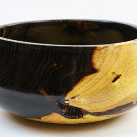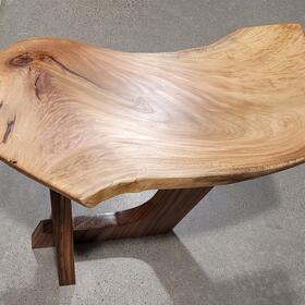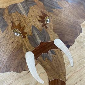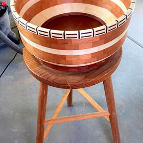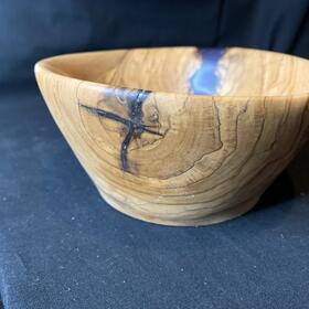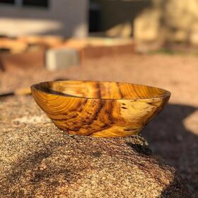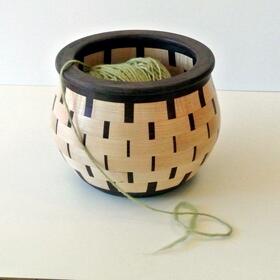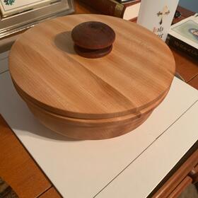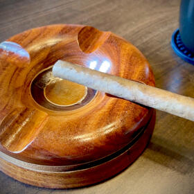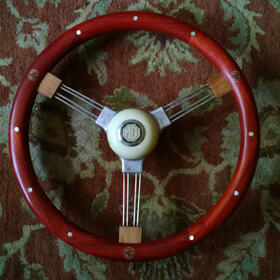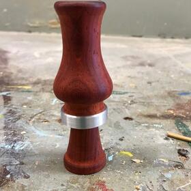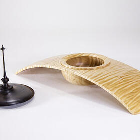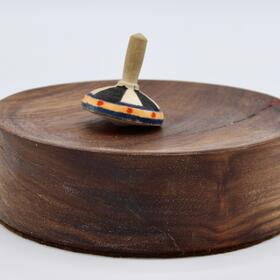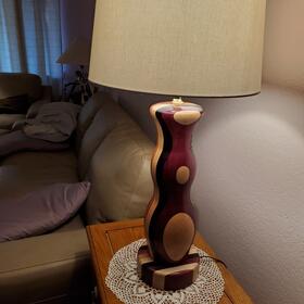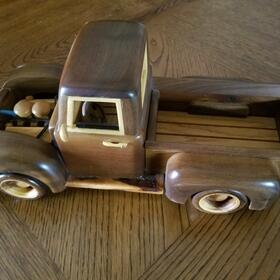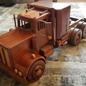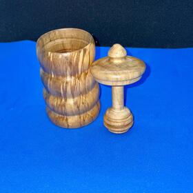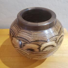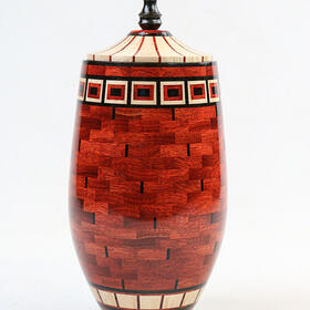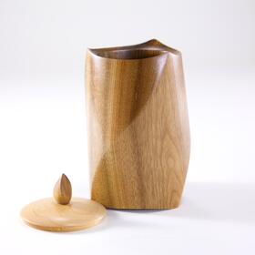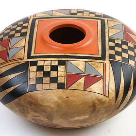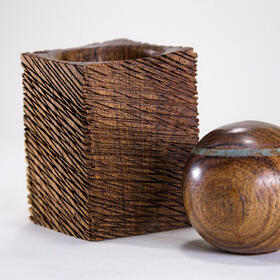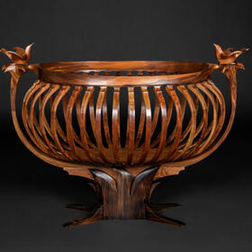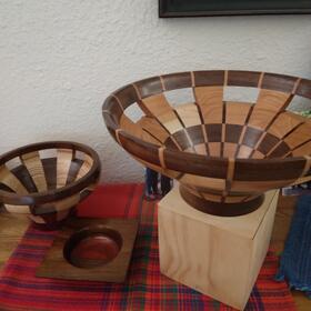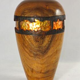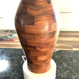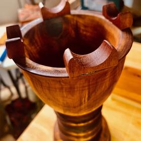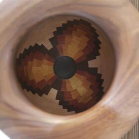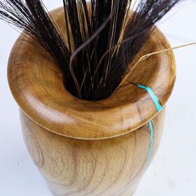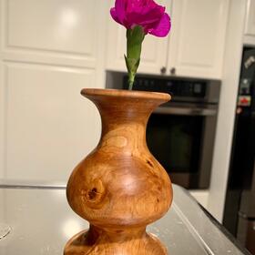 Carved cottonwood vase with a bouquet of wood tulips.(1)