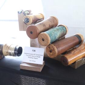 Different kaleidoscopes all turned and focused upon a single rotating object cell(1)